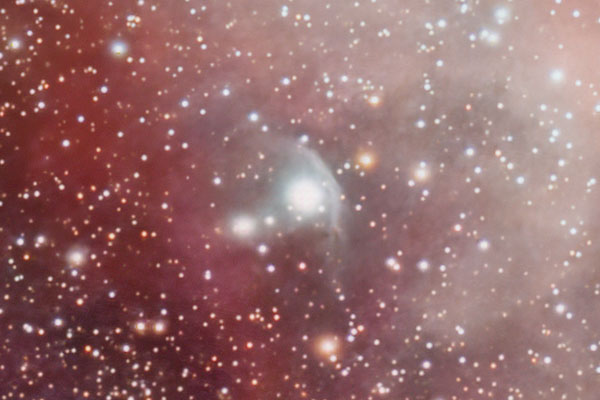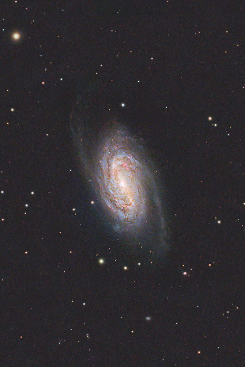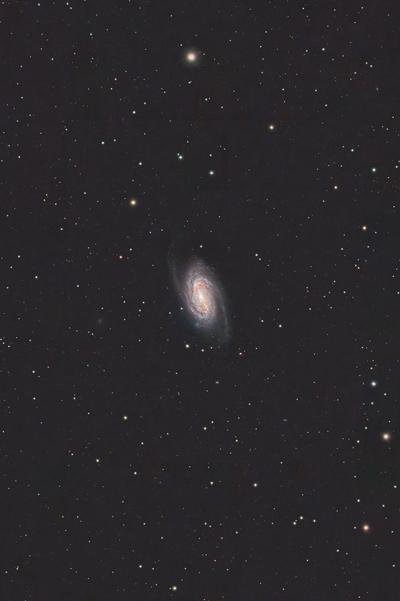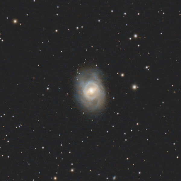 明るさ8.8等、大きさ12.6秒×6秒という明るく大きな棒渦巻銀河で、メシエナンバーが付かなかったのが不思議なくらいの立派なものです。地球からの距離はおよそ3000万光年。