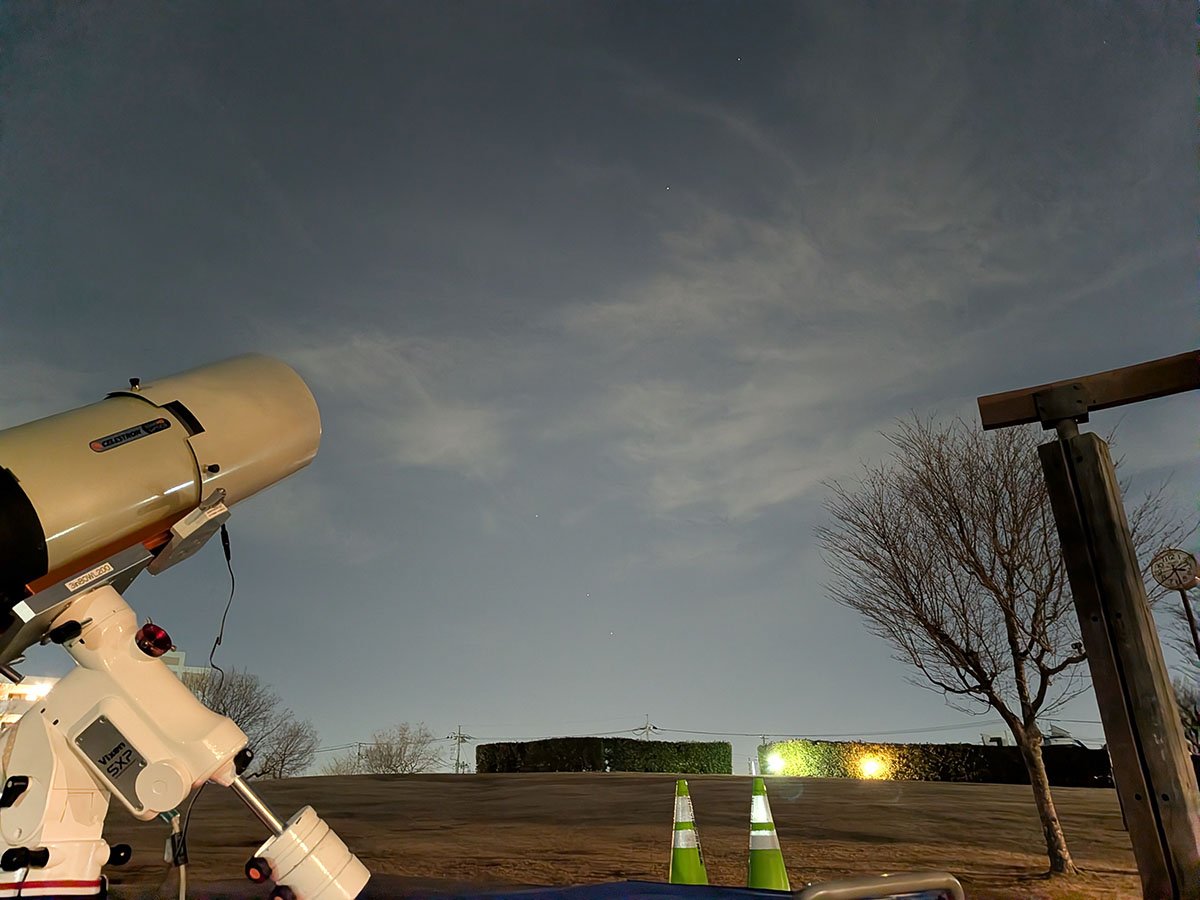 空は毎度のことながらこんな感じ。冬型の気圧配置ではない分、空は霞みがちで、星の見え方はもうひとつスッキリしません。まぁ、いつものことですけどね ┐(´д`)┌