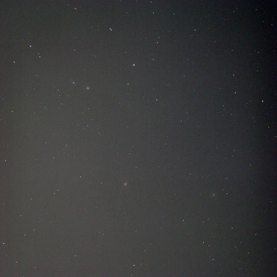 恐れていたほど酷いことにはなりませんでした……というか、かなり良く写っている方ではないかと思います。被写体として人気の「しし座のトリオ」ことM65, M66 & NGC3628と比べると個々の銀河が暗い上、銀河間の距離がやや離れていて正直あまり人気がないのですが、奇しくもこのくらいの画角だと構図が引き締まって見えます。どれも特徴的な形をしていますし、もっと人気が出ても良さそうなものです。